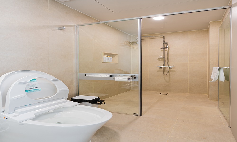 - 욕실 어메니티: 샤워부스, 수건, 목욕가운, 샴푸, 린스, 바디워시, 핸드워시, 샤워 캡, 면봉